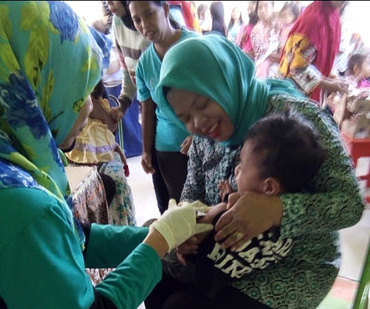 Kegiatan yang dilaksanakan sejak pukul 08.00 ini berhasil menarik antusiasme warga. Terbukti lebih dari 100 anak datang bersama dengan orang tuanya. Hal ini tentu menunjukan bahwa kesadaran terhadap kesehatan anak cukup tinggi di wilayah Desa Gedangsewu.