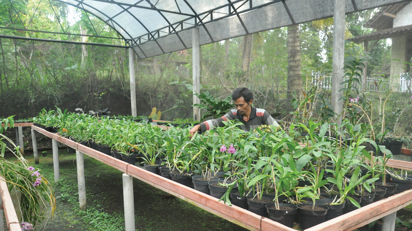 Di kawasan wisata seluas 1 hektar ini, belasan green house yang dikelola kelompok tani anggrek desa setempat menyediakan aneka ragam jenis anggrek baik bunga spesies domestik maupun persilangan.