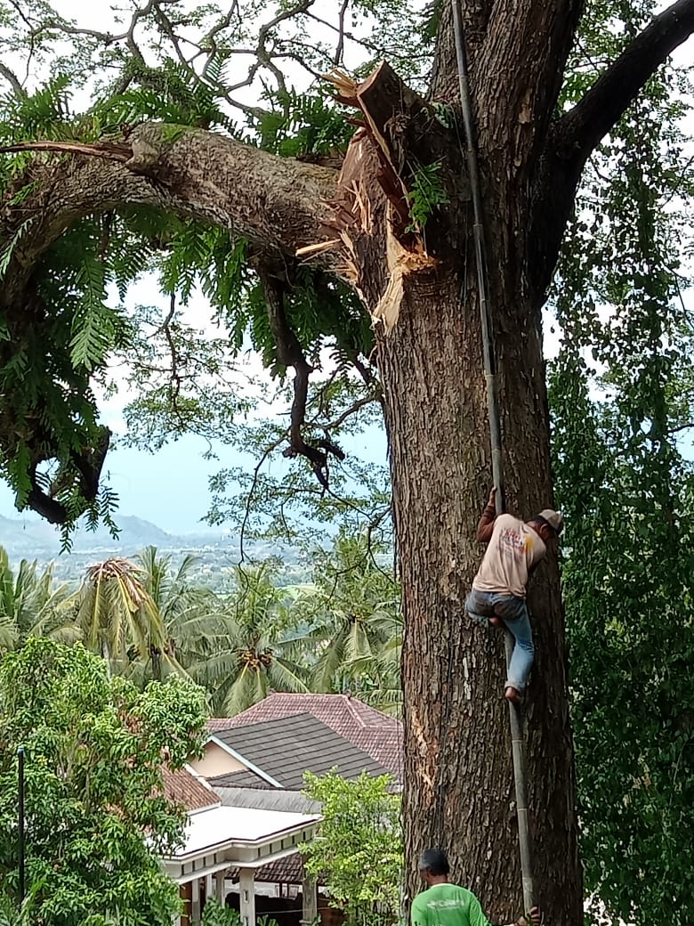 Di lain sisi, karena lokasinya dekat dengan jalan, kerimbunan ranting dan daun jelas mengayomi jalan. Dengan posisi jalan menurun terjal, dan jenis jalan cor, maka kelembapan menjadikan masyarakat sekitar miris akan keselamatan pengguna jalan. Sehingga Gerakan Seribu Tangan merapikan sisi pohon ini.