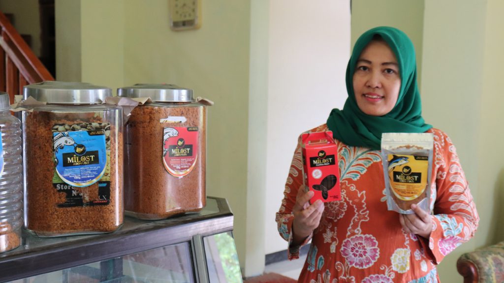 “Anggota kami sekarang mencapai 12 orang dan mengolah berbagai bentuk makanan seperti ikan patin, lele, tuna, abon, calsium, krispi, kripik kulit, stik, bakso, sosis, nugget, serta aneka roti,” Ungkap Ibu Masruroh.