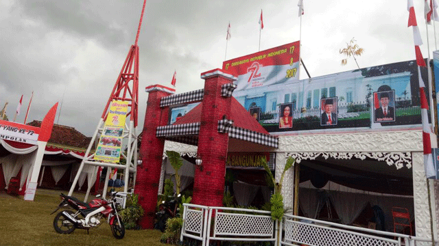 Desa Bangunjaya menampilkan stand yang berkesan megah. Bangunan layaknya benteng yang tinggi berdinding papan dan anyaman bambu bernuansa merah putih. Pintu gerbang yang juga tinggi dengan kanan dan kiri berjajar foto presiden RI dari masa ke masa.